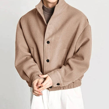 Make a statement with this oversized bomber jacket, the Finn Bomber Jacket, featuring a sleek, structured high collar for a bold, modern look.