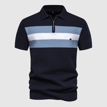 Crafted from a breathable viscose blend, this men's polo shirt features a modern zipper collar and short sleeves, ensuring both comfort and a neat appearance in casual or active environments. The knitted fabric offers durability and a soft feel, making it a practical choice for everyday wear.