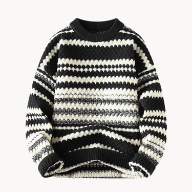 Constructed from a luxurious wool-polyester blend, the Camden Striped Sweater is designed for both warmth and timeless style.